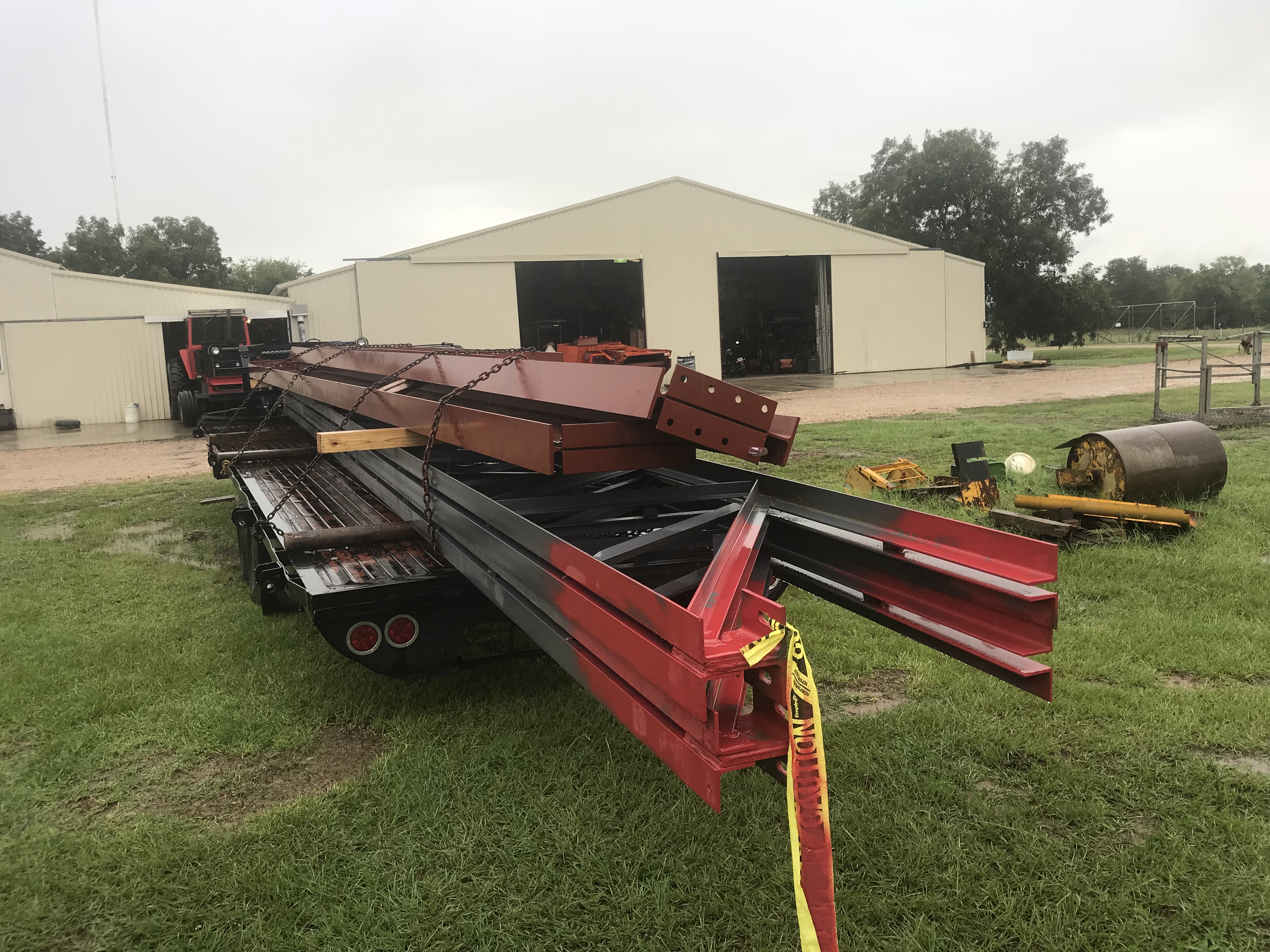 The trip home was interesting, no CDL, 8 of overhang, gawd alone knows how much weight, 40 X 48J bar joists and 21 X 38 beams with 1/2 web. We made it but by the time I got home the brakes on Lucille were a little spongy.