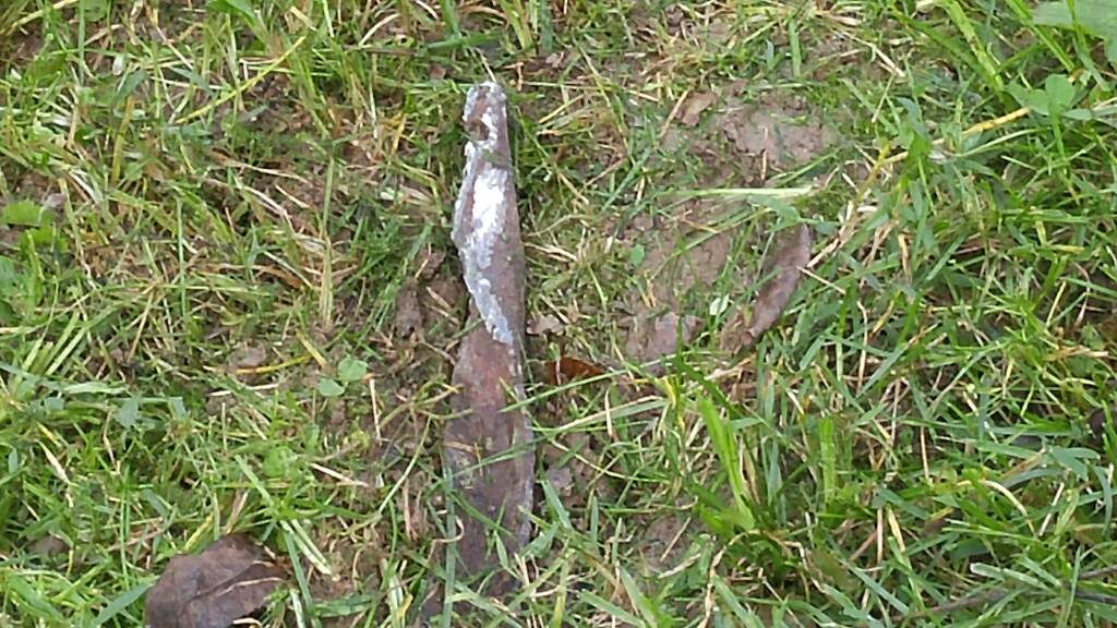 Found this metal with my mower blade today, down near the creek. I have mowed this area for years with my riding mower. My blades are 10 yrs old, might be time for new ones. 1028181414.jpeg