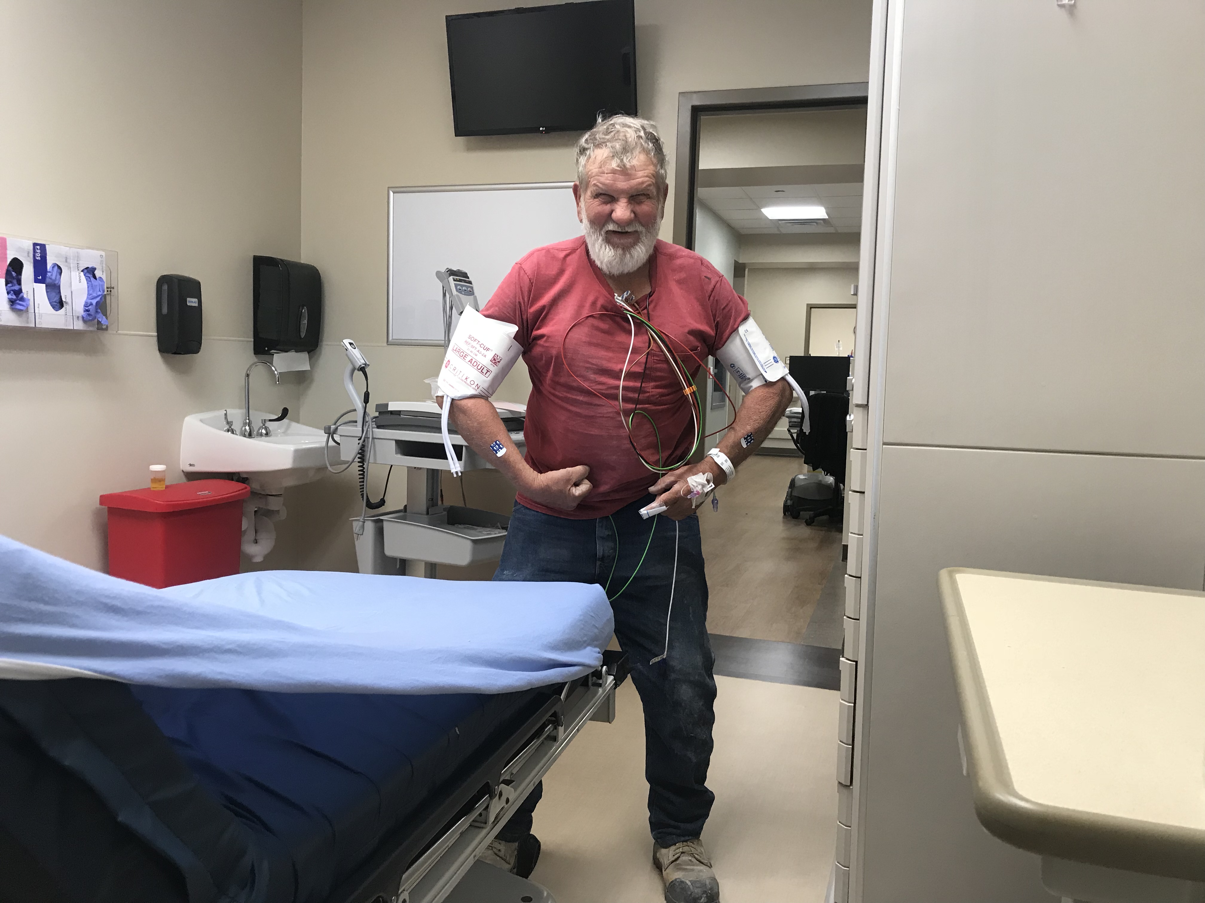 I had all that stuff hooked up to me last February . Thankfully all the test came out good. Praying/Wishing the same for Harvey.
