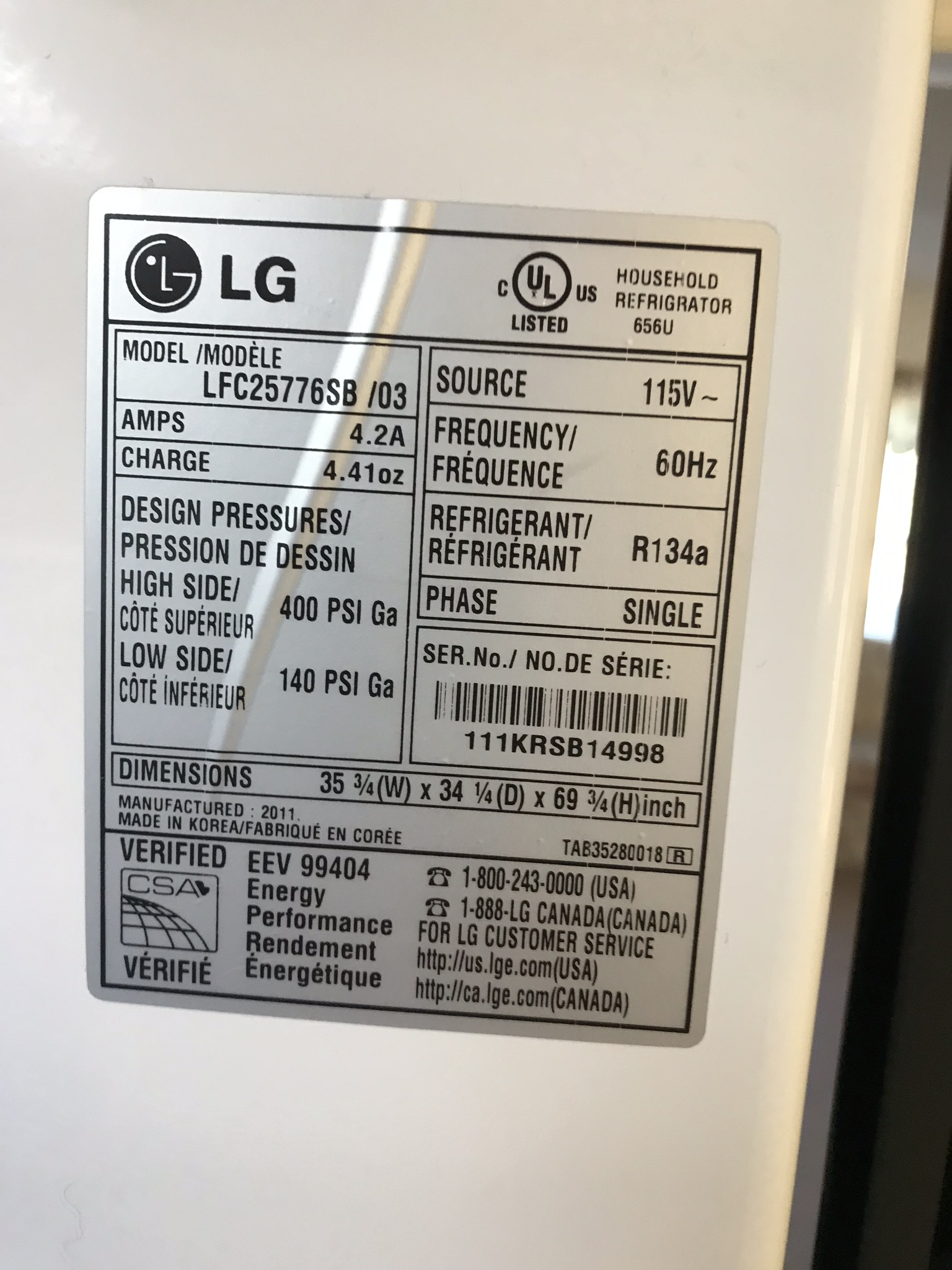 Kyle, this is my fridge, French door, 25 cu ft linear compressor, I don’t know how big you need.