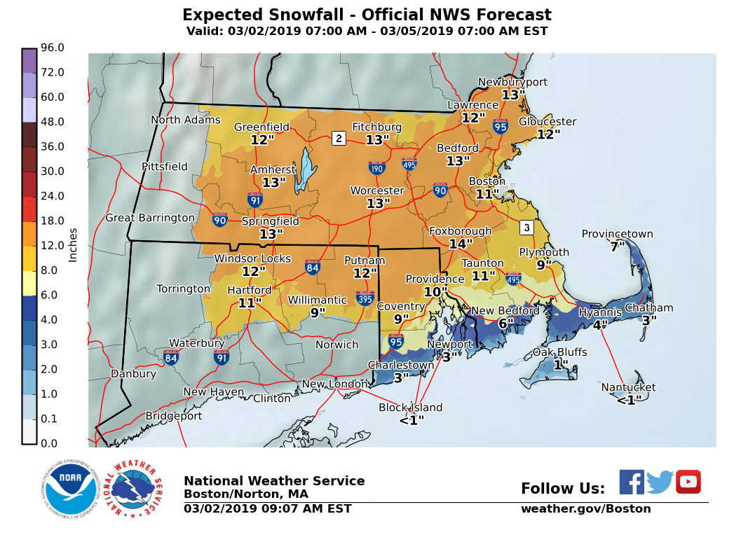 The inconsistent weather reports in NE are due to the reality of 3 separate weather systems impacting the area. The real storm is Sunday night- Monday morning