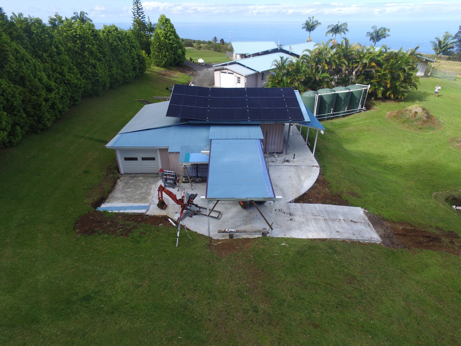 In the background is the broken power pole from the last outage, with a new pole beside it.