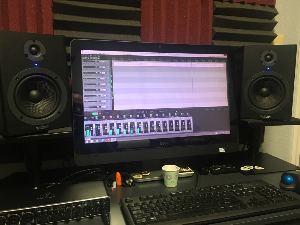 Did some MIDI editing on a drum track last night. Finally remembered to snap a pic of the new stands doing their thing.