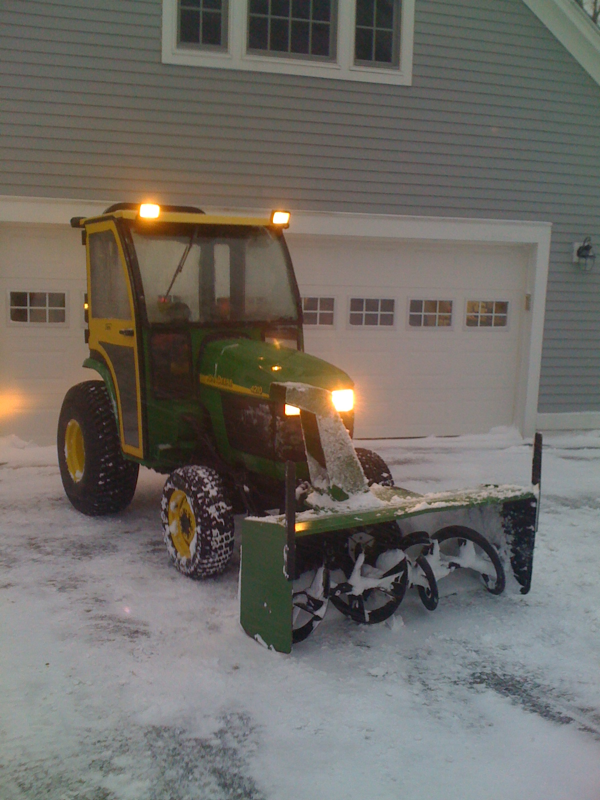 heres pic of Greenie when I got off to throw salt down on a sidewalk. I always forget to take pic while plowing.