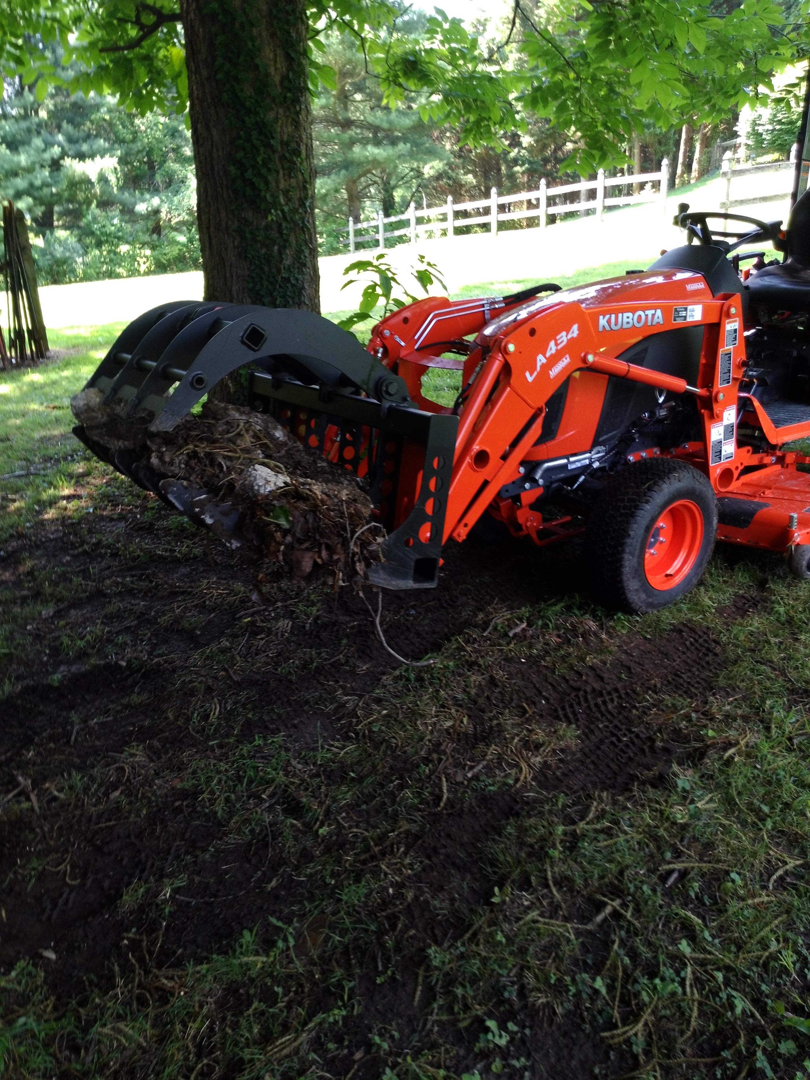 I haven't felled a tree less than 10-12" diameter that I could reach with the tractor in years. Smaller trees get the root grapple treatment while the larger ones are toppled with help from my BH and ripper.