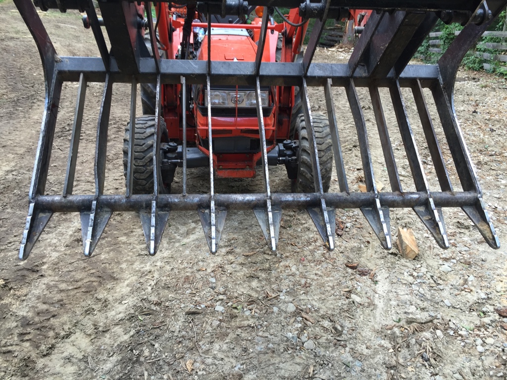 I welded more tines onto my grapple because of the falling firewood, and now it's very rare that I
