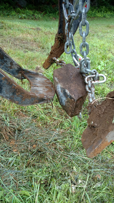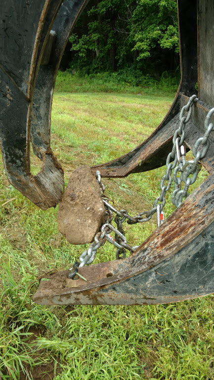 Looks good. I've never been around tractors very much so I don't think of these types of solutions. It looks like the chain forms around the rock to help capture it. With the plate, it might slide off more. I guess that is what the teeth are supposed to help with. I'll try the plate for a while but then I might try a chain for comparison. If I do, I'll let everyone know how they compare.