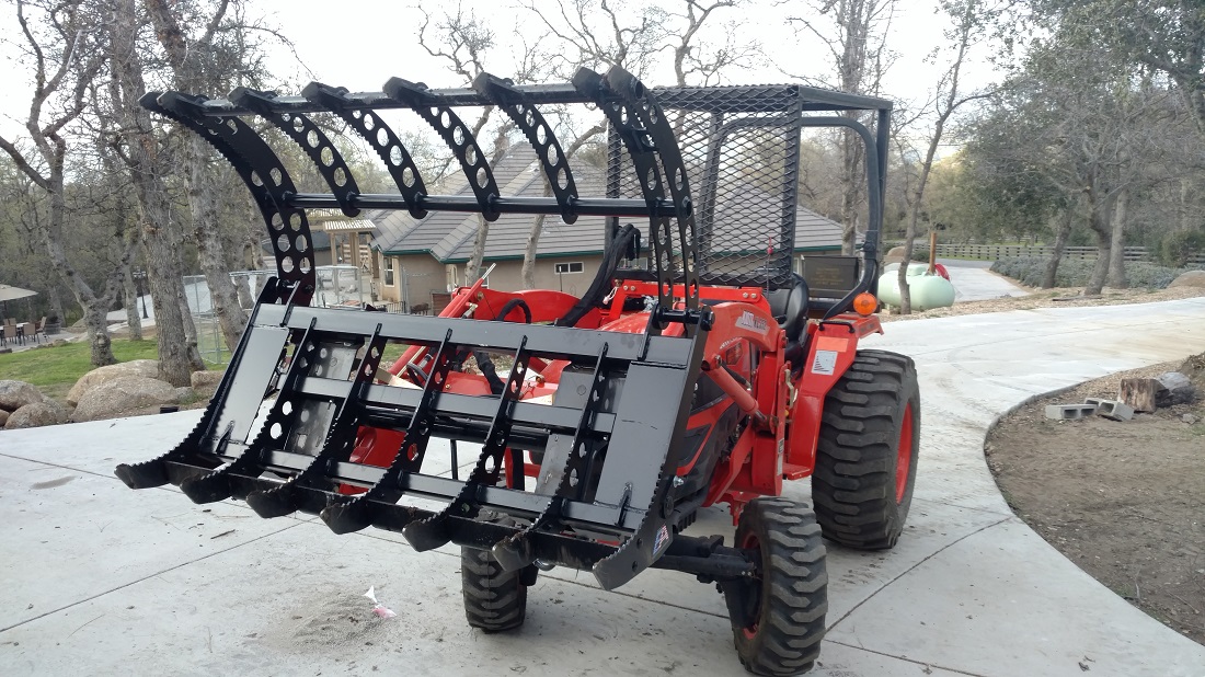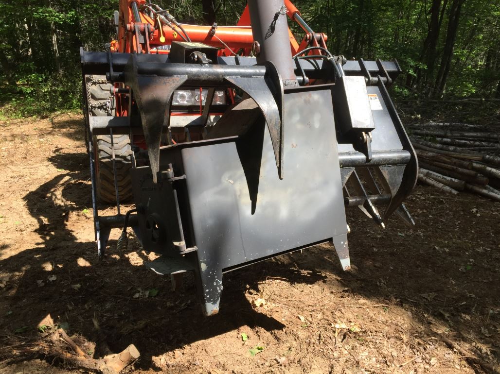 I’m guessing the bucket weighs closer to 300 pounds. A 600 pound grapple for that size machine is a little heavy. With a properly sized grapple the weight difference isn’t substantial. And the loader is good for a lot more than 1100 pounds a couple feet high. The breakout force is pretty close to the ground level lift.