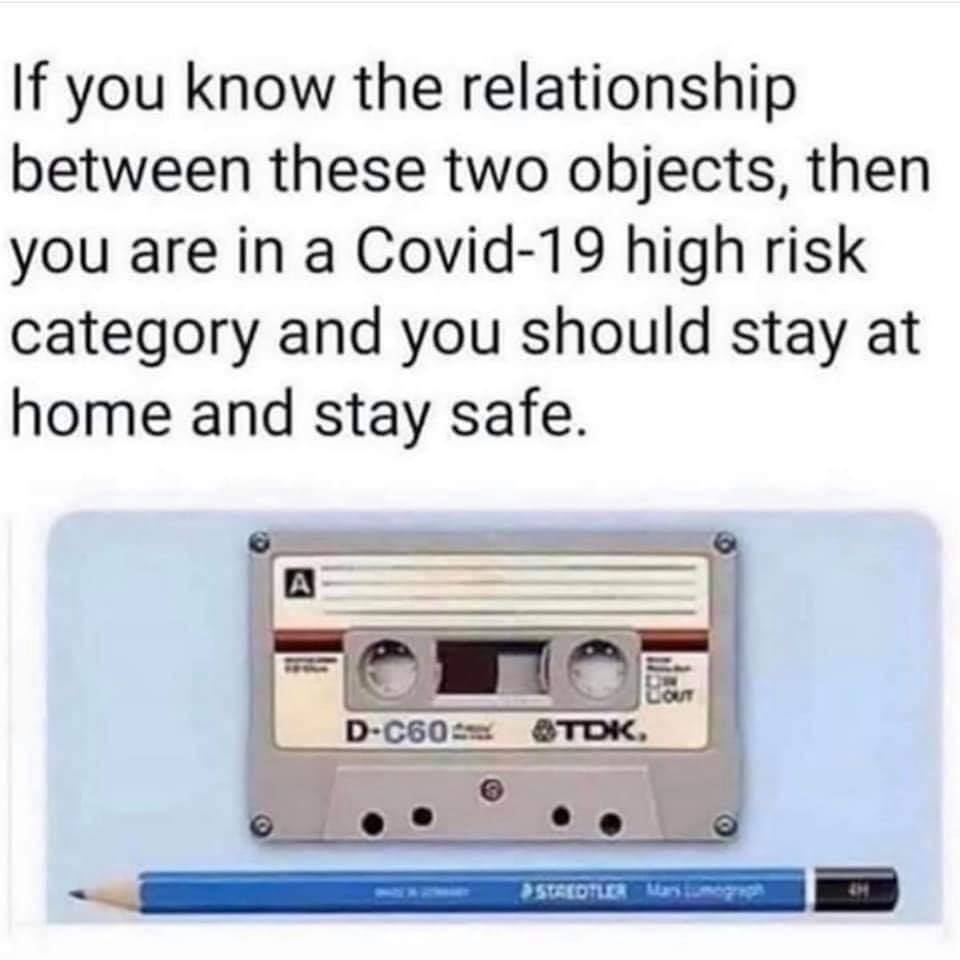 Winner winner chicken dinner. You've proven you're old. HahaIf the tape gets spilled out in a big loop, you stick the sharp end of the pencil in the toothed takeup wheel and spin it to get the tape back inside and tensioned.