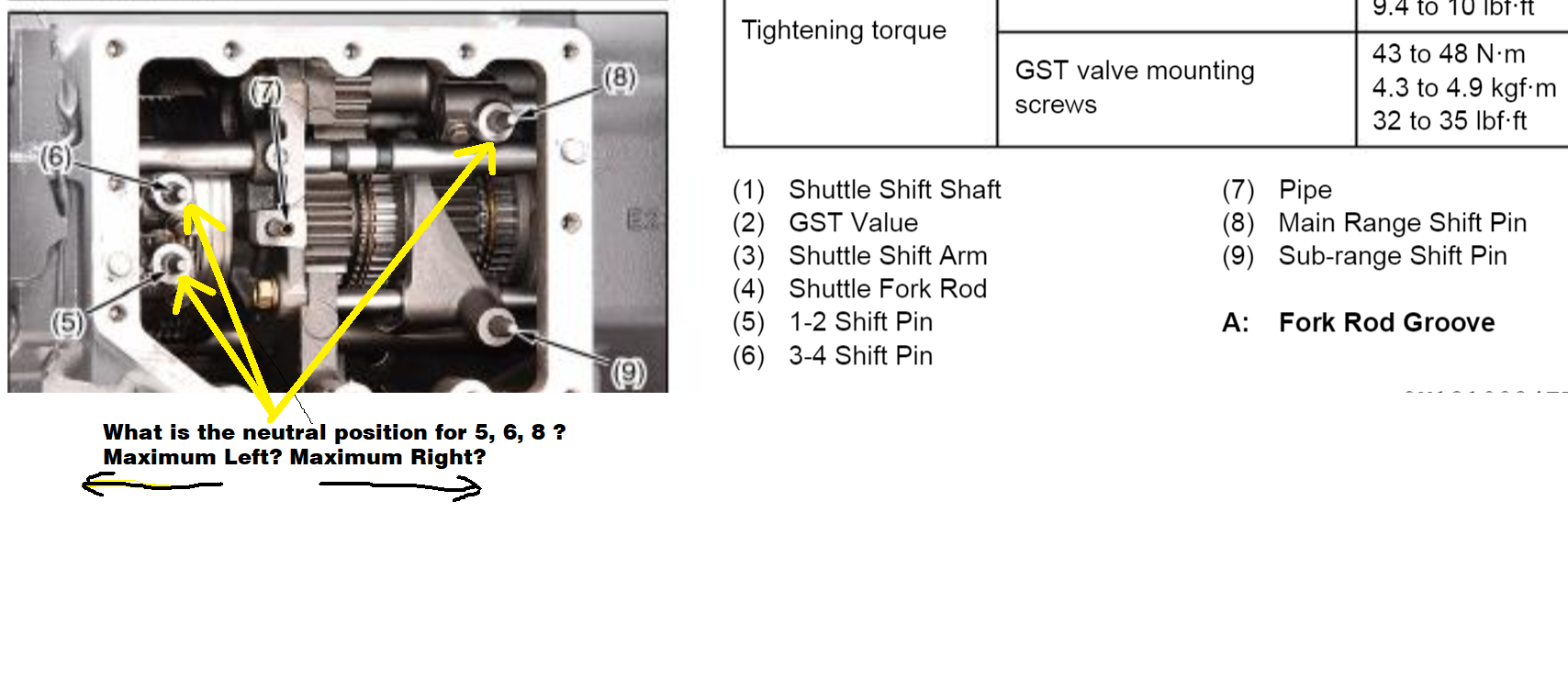 Can you tell me what is the neutral position for (5) 1-2 Shift Pin, (6) 3-4 Shift Pin, and (8)?