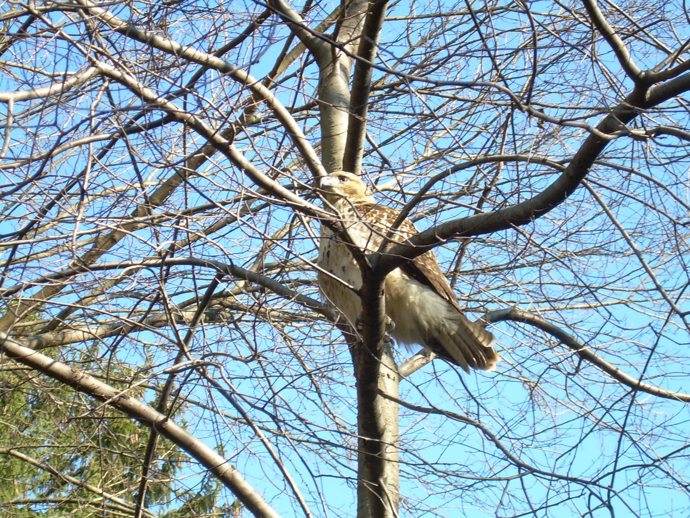 Couldn't get a turkey pic though I've seen some huge ones recently, but this guy flew into my sons picture window today, he yelled down that a hawk flew into his window and was laying on the driveway, knocked him silly but by the time I grabbed the camera he got up onto a low branch.