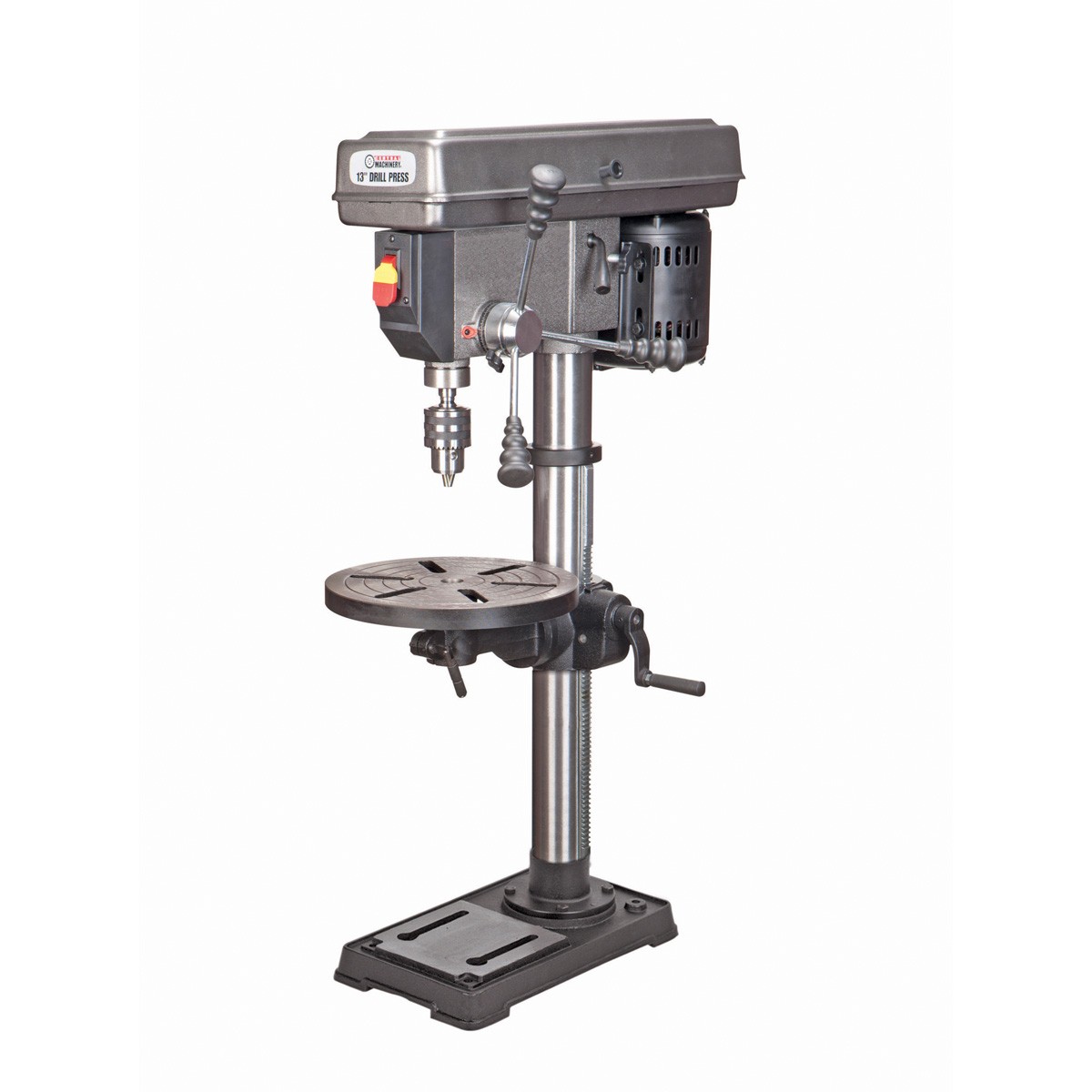 Rick, I recently wanted a second drill press for a small metal-working production job for a local club so I wouldn't have to be switching out jigs and set-ups. Perfect excuse to buy a new tool. :thumbsup: I looked at the 13" bench model you have in mind, and the 13" floor model, but then saw a 17" 16-speed floor model standing next to it. Floor Drill Press - 16 Speed Floor Drill Press World of difference, in my opinion. Much beefier, 4" more swing, and a 1 hp motor. With the 25% coupon I had at the time, it was only $97 more than you'd pay for the 13" bench model. It also has a flexible task light and is already set up to handle lubricants with a square, T-slotted, self-draining table, a gravity-feed cutting oil reservoir and collection bottle. The 13" model has through-slots in a smaller table, so you'd have to figure out a way to capture the cutting lubricant.