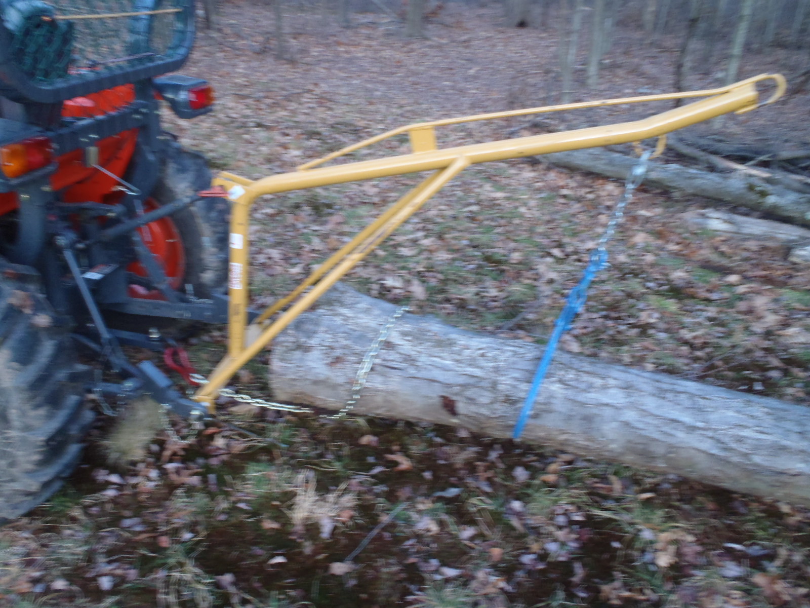 B2920 CUT has turf tires, so I have the same traction in reverse as forward. I knew I was dragging with the FEL, so I loaded the 3 point hitch with my carryall which allowed me to carry the chain saw, axe, chain lube, extra fuel and chain, which made a great wood clearing setup, so I had a counterweight. Pivoting a log around with the FEL and the opposite side on the ground shouldn't put severe stress on the loader arms. Since the OP posted the weight of the load and it's within the FEL capacity with reserve, it's also within the range of weights that the front axle is rated for.