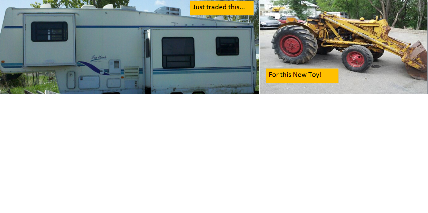 Thanks for the warm welcome! Here is the beginning of my journey. The fifth wheel was given to me and was a fixer upper as is the tractor so I think it was a fair trade. :D