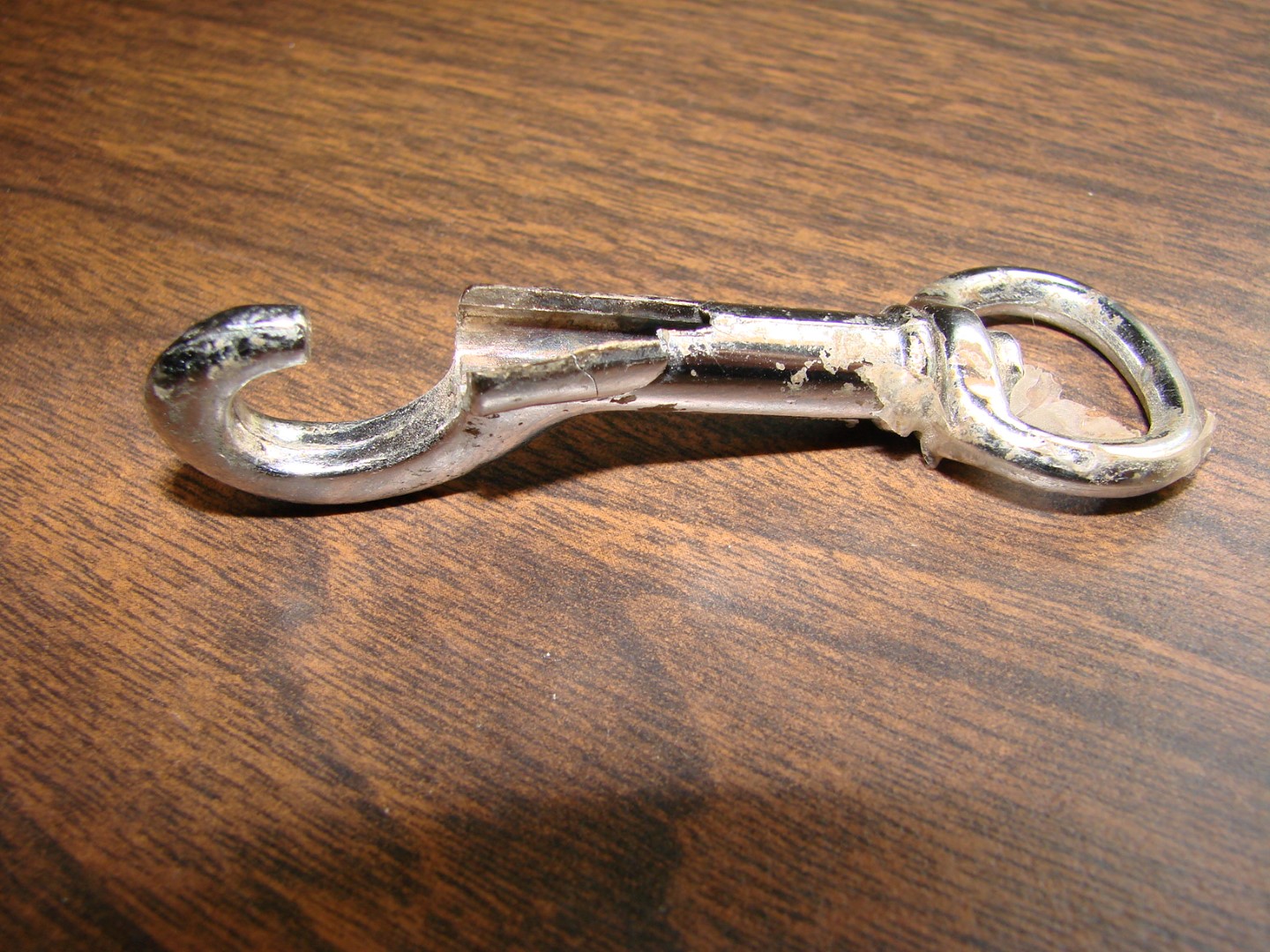 When I went to check the trap this morning the only thing I found was the broken snap bolt clip in the attached photo that was used to hold the trap to the cage to keep the coon from running off with the trap. It took a lot of power for the coon to break that clip but Houdini did it.