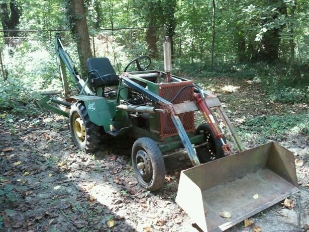 I am in the process of re-plumbing a REALLY old terremite that has been hacked, cut on, and generally hill-billy ized for the last 25 - 30 years. What it has now is a single pump (unknown, with no nameplate, except that it is a vickers) being driven by a wisconsin thd 18 HP twin. This runs everything, including the drive motor. This makes it pretty much impossible to run the front end loader properly, due to every time I use the bucket, the drive is affected. Also, the drive motor is of unknown origin. What I want to do is change the pump out with SURPLUS CENTER's Item #9-7885, which is an EATON tandem pump with 8.9 GPM on the front (to drive the axle), and 7.8 GPM on the rear (to power the loader and backhoe) My problem is drive motor selection. I am thinking that I need something around 300 RPM to get 6-7 MPH, but that is only my guess. I have attached pictures of my pile, and a professionally drawn schematic of what I want to do... Any help would be greatly appreciated. Thank you very much.