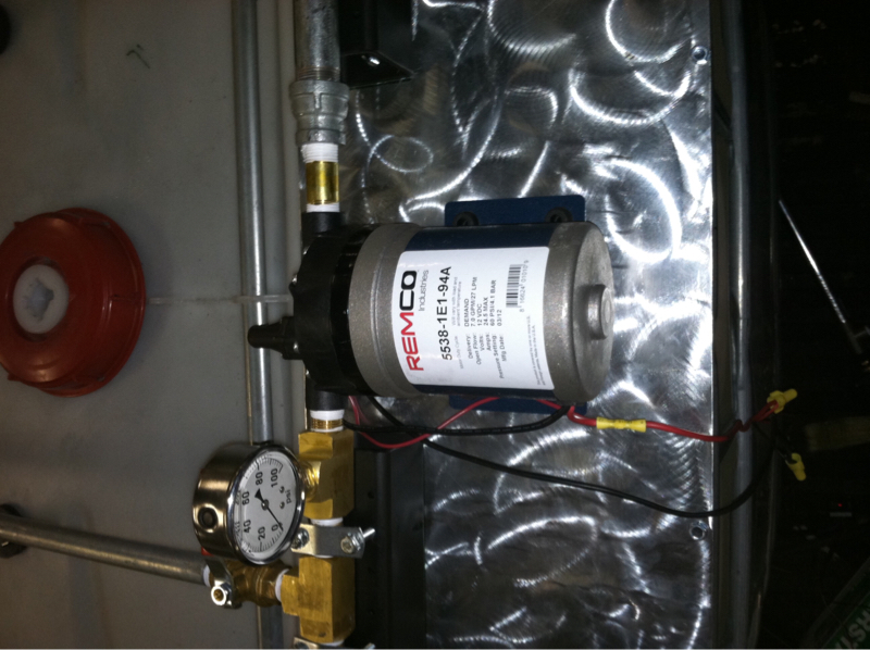 I do not use electric pump motors. Use the width of the trailer and see if the pump can support the nozzles needed for full width pass or more, you really don't want to drive on your spray. The new commercial sprayers even a foam marking system to set up your next pass overlap. I am old school and use my previous tire depressions and gauge the distance to overlap the previous pass. This should work for you. You want the edges of the outside triangle spray to overlap about two inches. Test on a dry surface like a parking area.