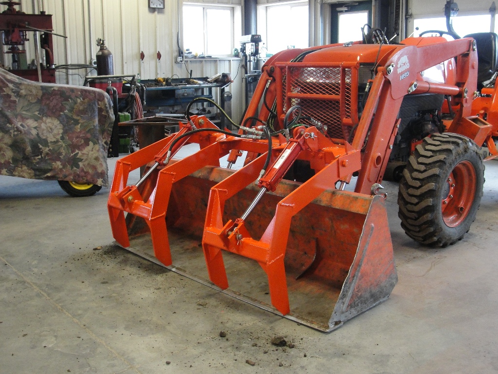 I've been trying to find plans or templates for a homemade grapple. I've been taking measurements off skid-steer grapples and measuring my quick connect on my Kubota tractor. I found this video on youtube. If I had some measurements/templates this video would be a perfect how-to on building one.