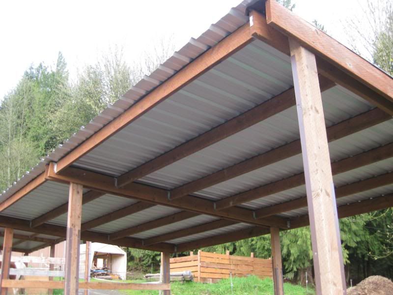 Alright y'all, I'm looking for some input. I'm getting ready to build a 12x24, three sided shelter for the horses. The plan is to use 6, 6x6" posts with a sloped roof that's about 11' at the opening down to 10' at the back. I plan on doing metal roofing for the roof and possibly the sides, with some 2x lumber for the bottom 4' or so of the insides for a kick board.