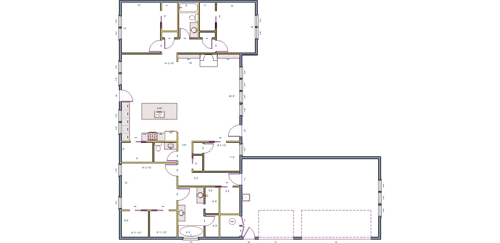 The plan I came up with is 2,000 sq ft. Three bedrooms, 2 1/2 bathrooms and a small office. One story, easy to clean and big enough to entertain, but also small enough to not be very wasteful. Most of the walls will be 8ft tall, except the open middle area, which will have 9 ft walls. The family room will have a vaulted ceiling, the kitchen, dining and master will have raised ceilings.