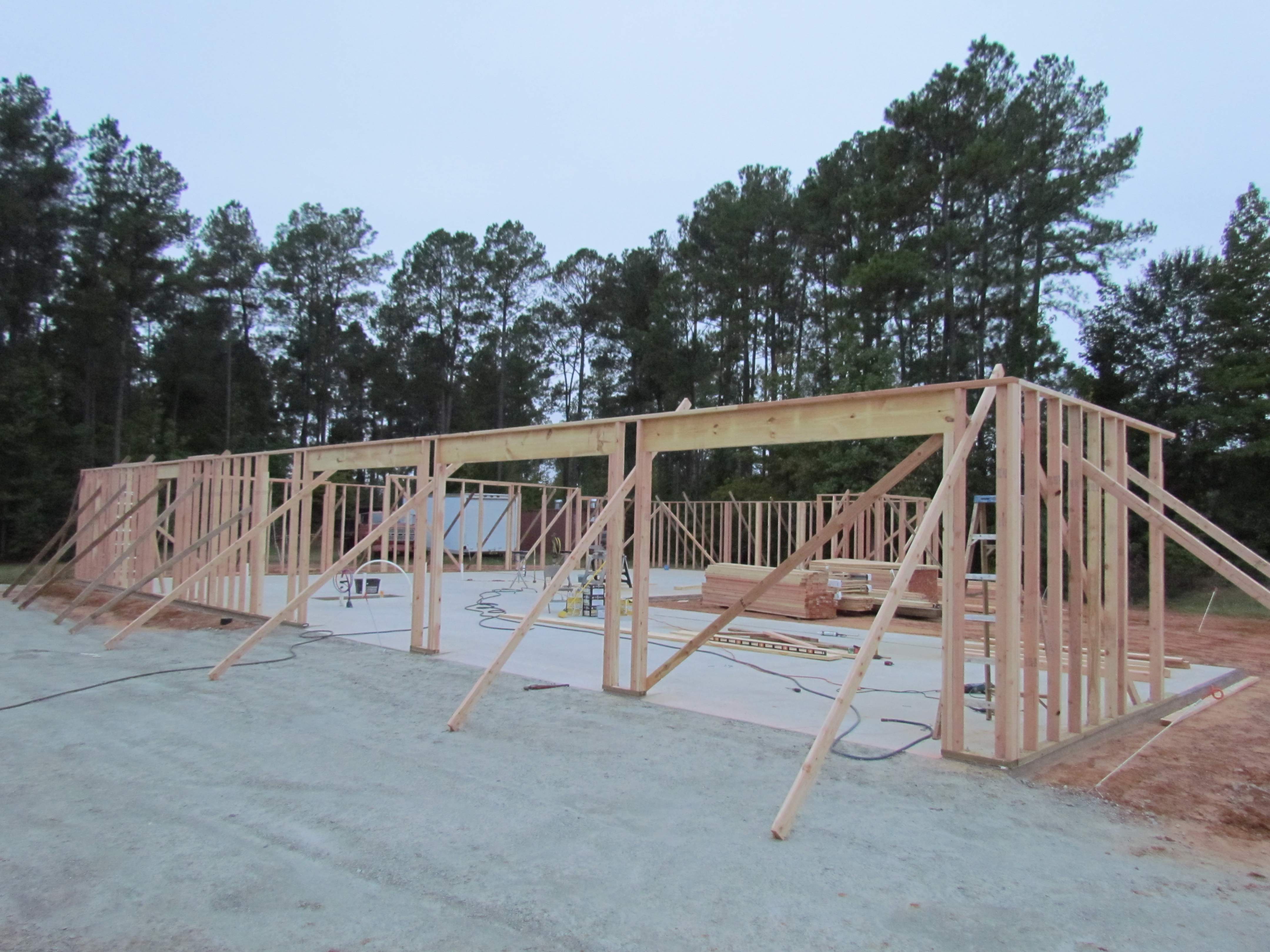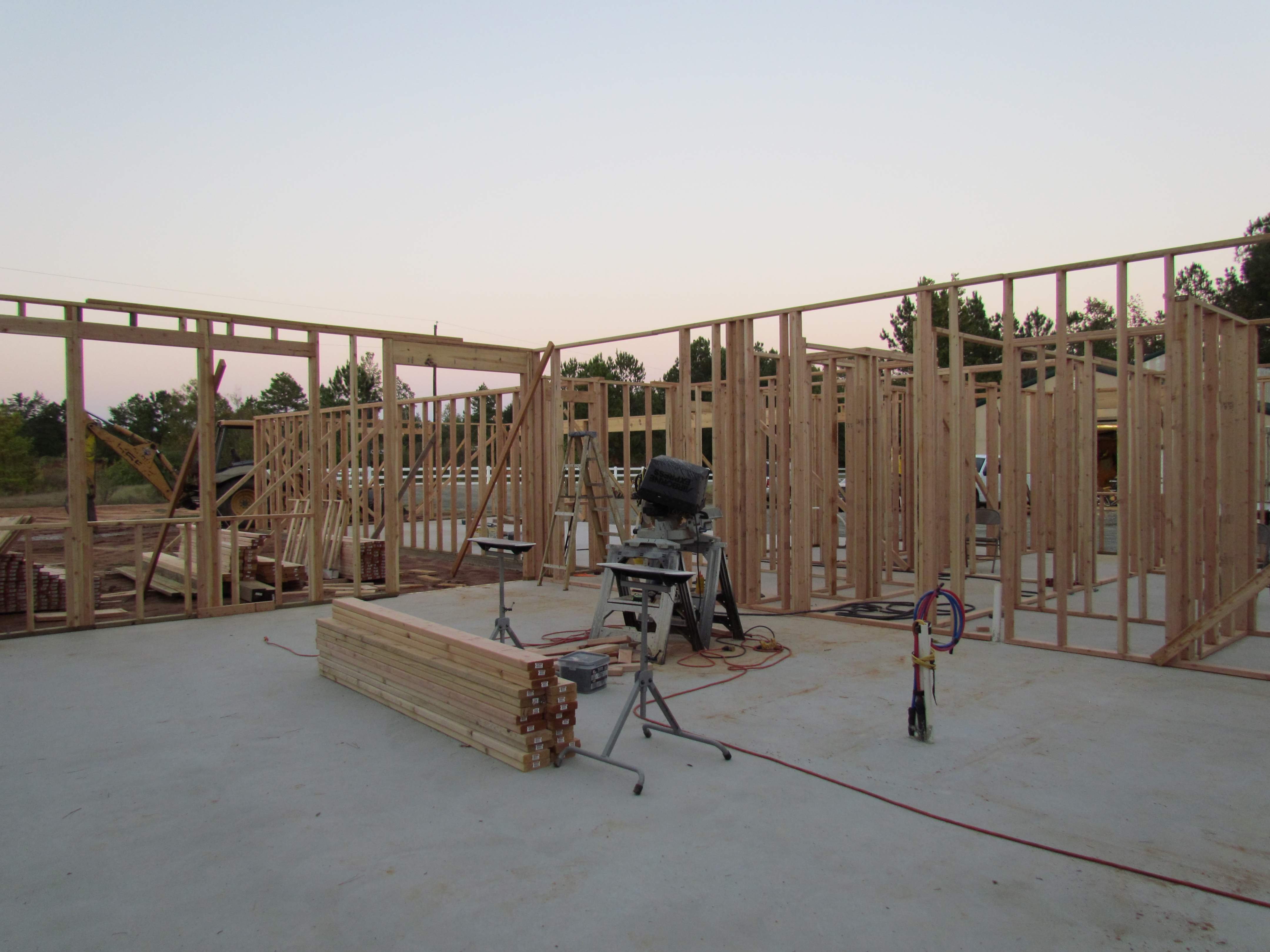 If you look close, you'll see that there are no headers over the windows or walk through doors, and only one 2x12 above the garage doors. Dad will cut and install those during the day while I'm at work. If he gets that done, I'll go over cripple studs with him and have him do those next.