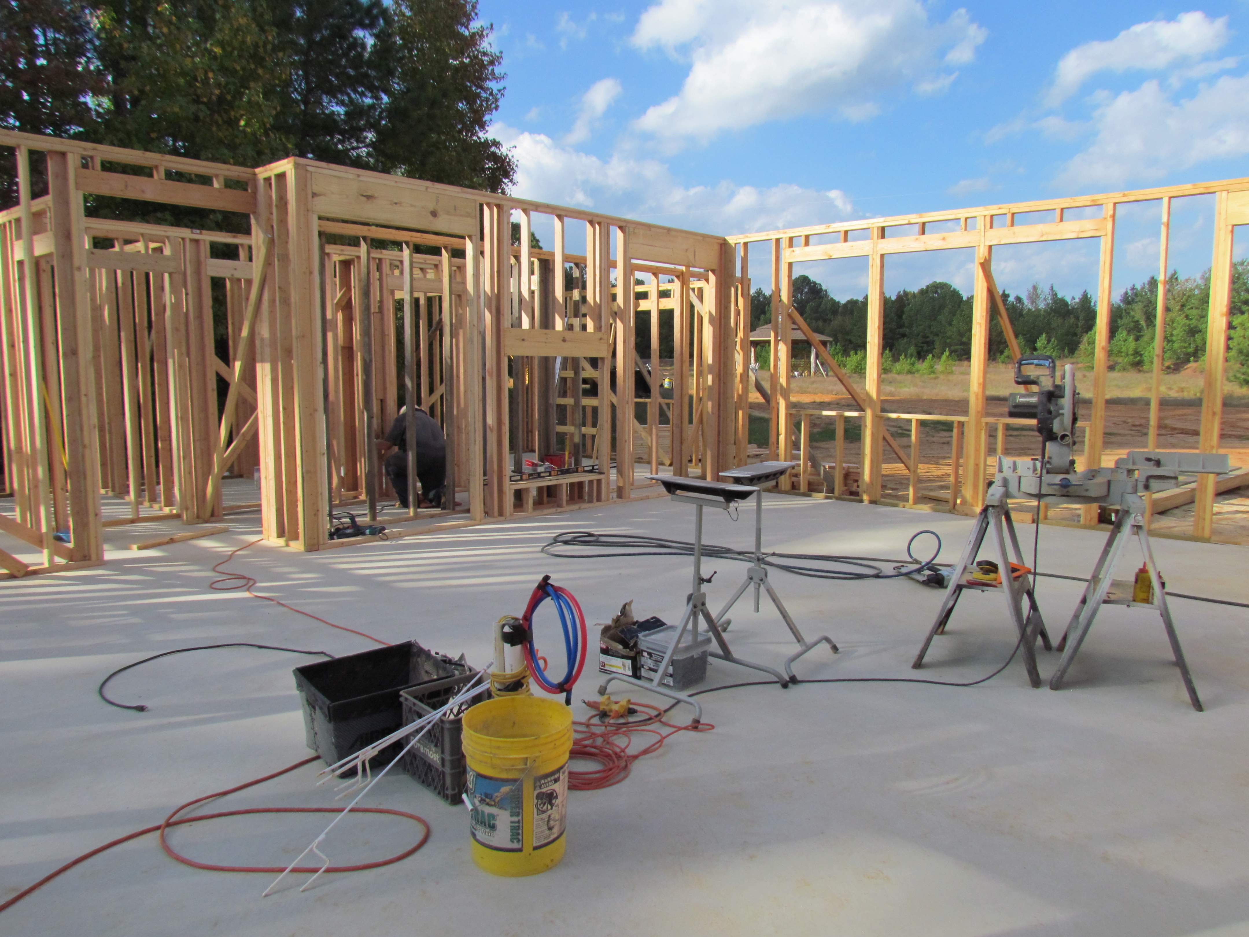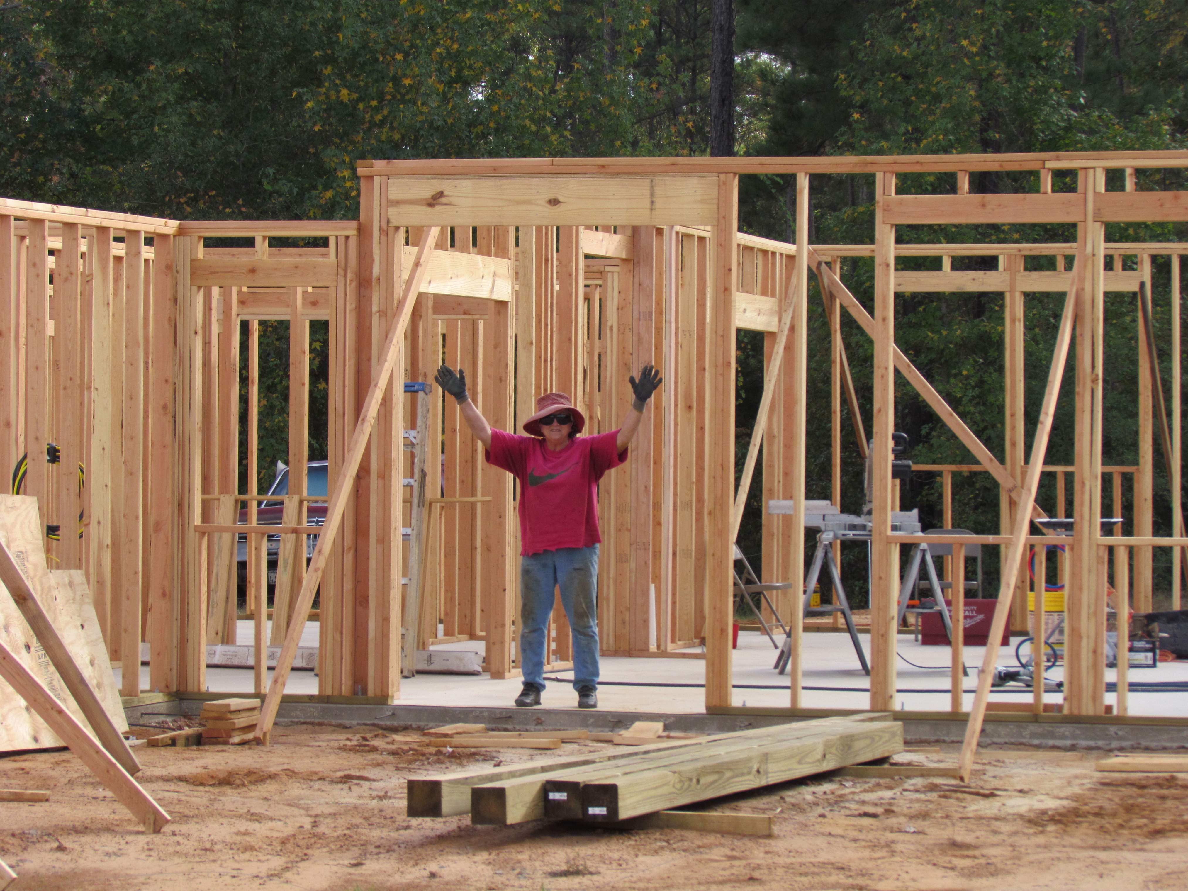 The walls are all framed except for the headers. My dad will do those while I'm at work during the week.