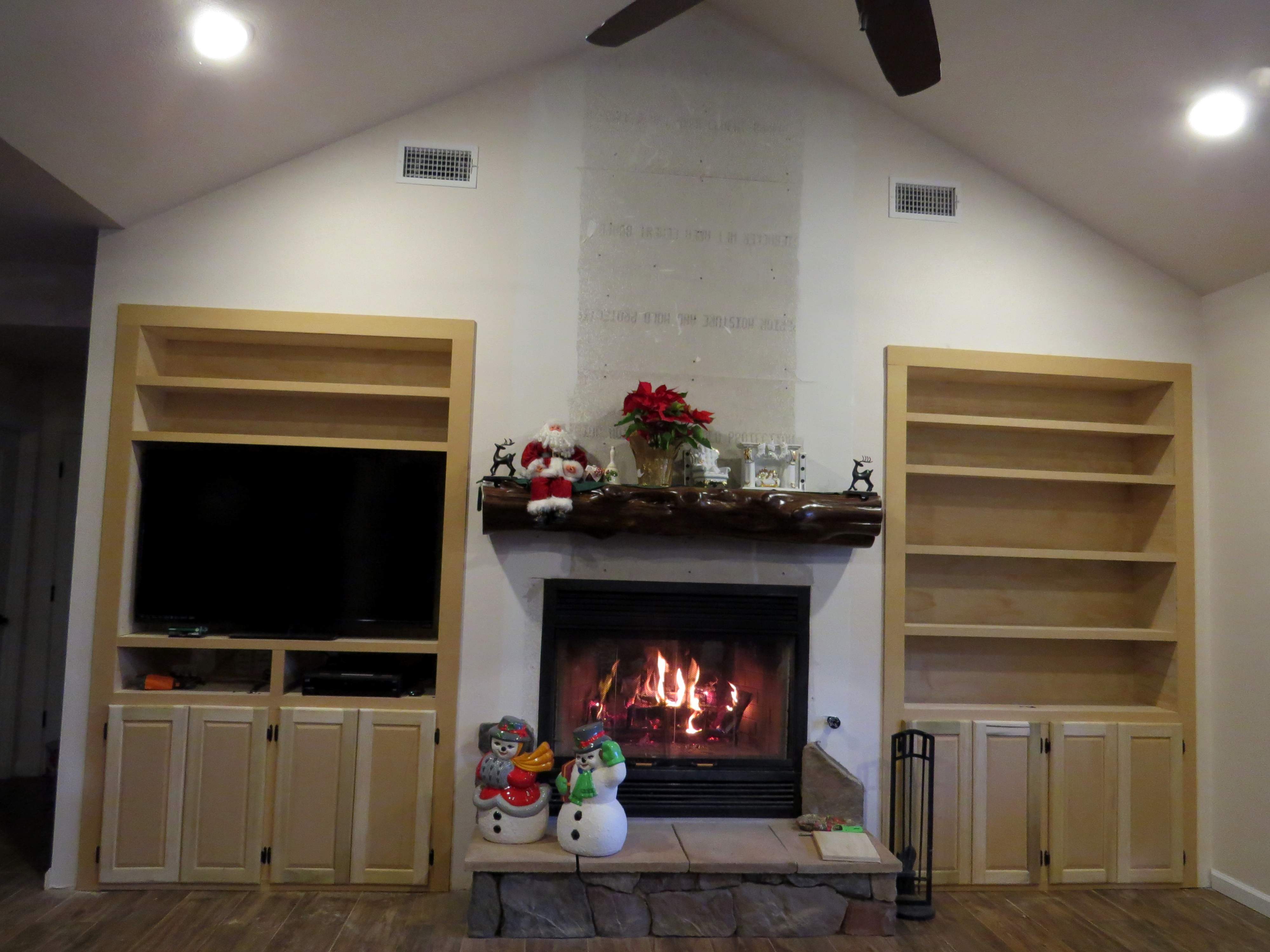After much discussion, and my changing my mind about the mantel, we raised it quite a bit higher. I had an image in my mind of what it was supposed to look like, but the more I looked at it, the more I didn't like it where it was at. It wasn't to code either, but it was close, so I went to code, and then quite a bit farther to get the look that I think works the best.