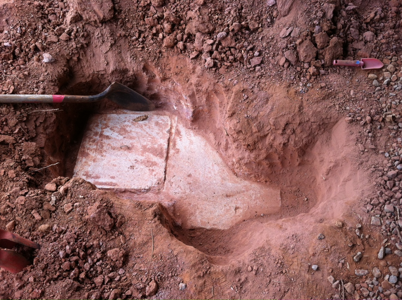 Here's a sketch of what I have found. There is one corner uncovered as noted. So, any ideas on where to dig for the lid? Guessing it would be on the centerline of the 4' width, but wondering how far in from the 4' edge.