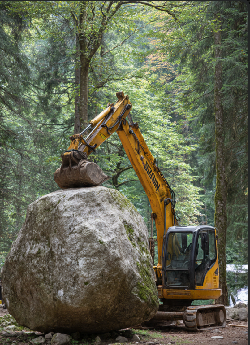 The egg-shaped granite boulder would weigh approximately 26,400 pounds (about 13.2 tons).
