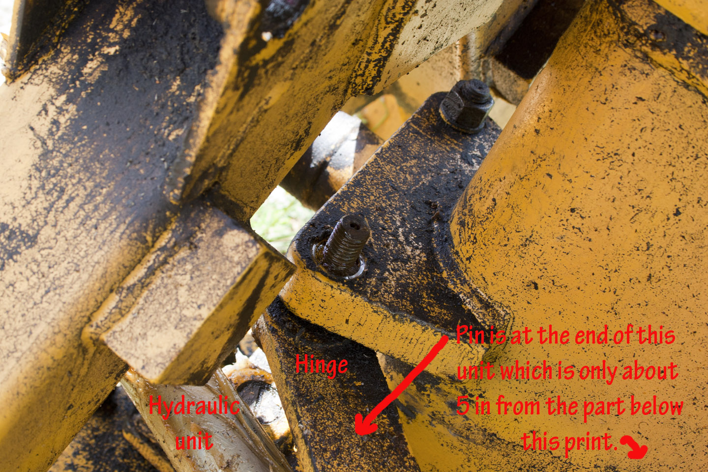 I have an old Long backhoe that I am trying to remove hydraulic units for rebuilding. I am having problems with two units where I am unable to remove the pin holding the unit to a hinge. The first photo shows the pin from the outside, the second from the reverse side. I can see nothing that is holding the pin, other than it possibly being a tapered pin. Any suggestions on how to remove this pin?