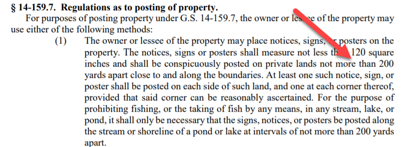 Ya but paint in no way means "no trespassing". Put the signs in a tree ~10 feet off the ground...where they are still in clear view but can't be ripped down. That coupled with wireless cameras works well for us.