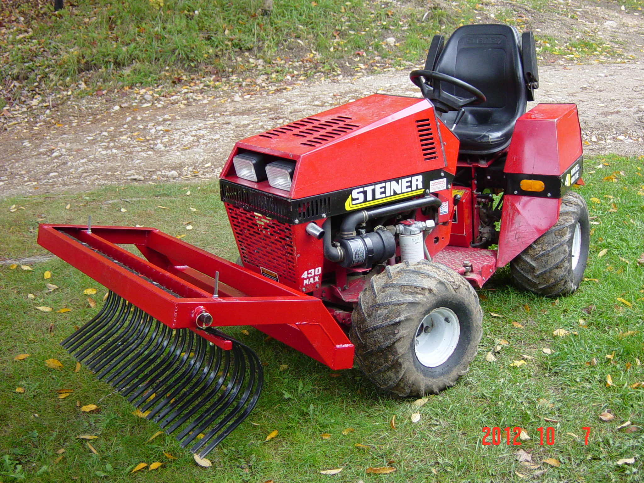 Not to sure what you mean. Once in the JD bucket, they can be dumped where ever. I have grapples, for big rocks, but this arrangement is for picking up stones and debris collected by the harley. Grapples arn't much good when you have a mish-mash of material to pick up. And a bucket is no good without back up.