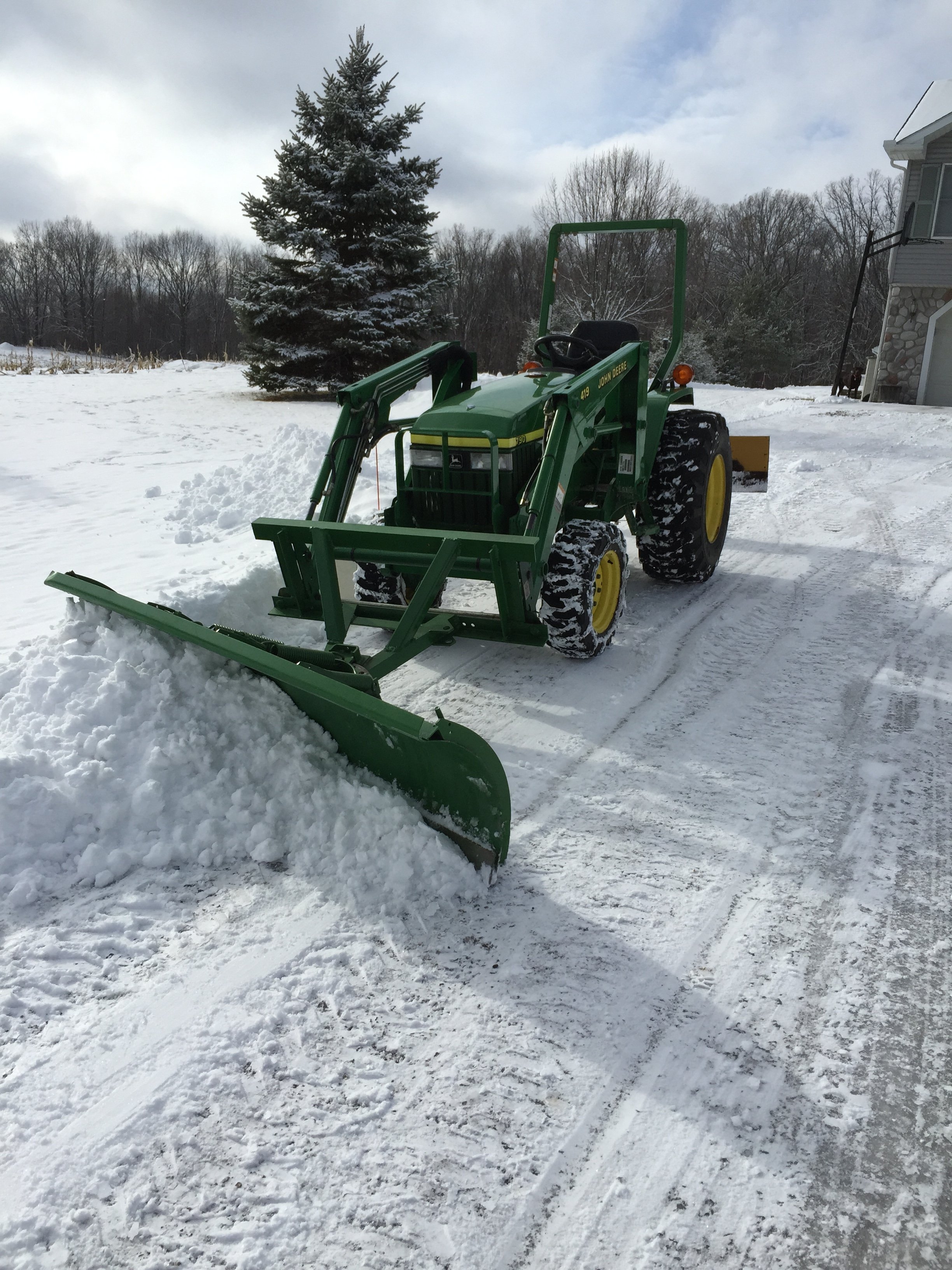 Our primary snow mover is the 1989 Jeep Cherokee XJ with a 6'6" Western snowplow. It does a real good job with a front diff lock, 5 speed with the 4.0L. It's nice to have a heated cab. Traction becomes an issue in wet, sloppy spring snows though.