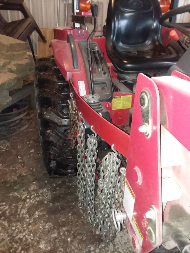 I think those chains swinging and banging on the tractor would cause problems . I made brackets and bolted on an ammo box where the left side step would be.