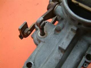 There is a second, smaller butterly valve controlled by the throttle cable. This is where I think my issue is. This valve would not fully open. It has a rod/lever connected to something inside the float bowl. I'm guessing that lever is connected to the accelerator pump (but could be out to lunch on my guess). Whatever that rod connects to is seized. So I banged on what I'm calling the accelerator pump and got it down deeper inside float bowl. Now I can at least see the smaller butterfly valve open and close when I move the throttle cable. But the "accelerator pump" is still not moving and is now stuck in a down position. I suspect it is supposed to slide up and down freely with the rod connected to the valve.