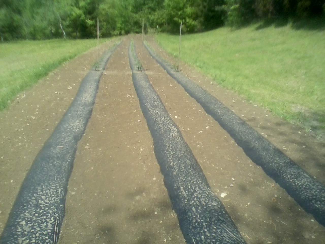 Nice setup. The soaker hoses saves water. There is also less grass and weeds than using a sprinkler. I laid out my first soakers of the season yesterday {or was it Tuesday?} in the new peas.