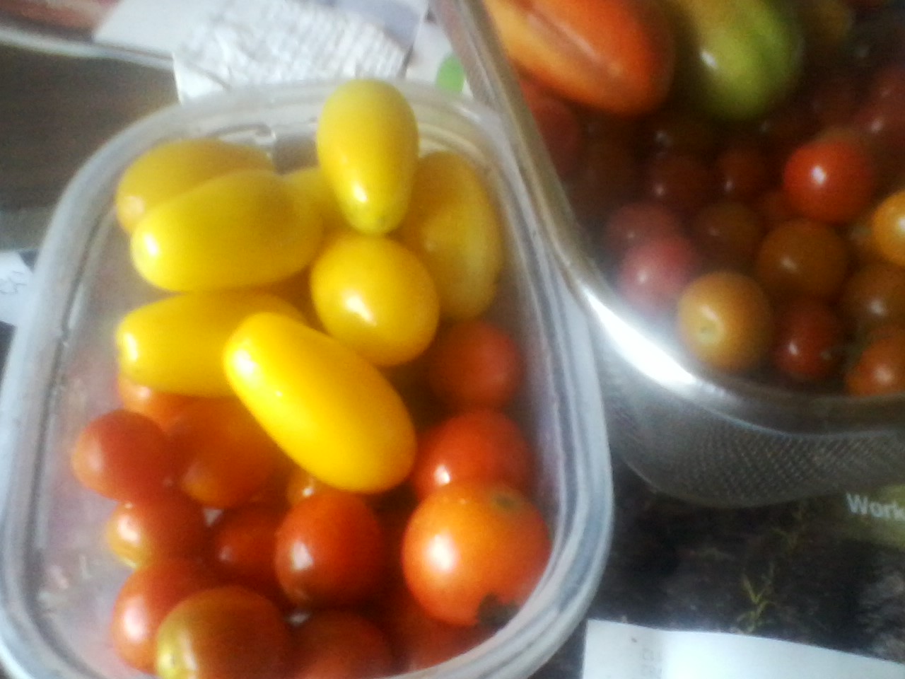 These are some cool little tomatoes I grew...yellow pear is what they are called.