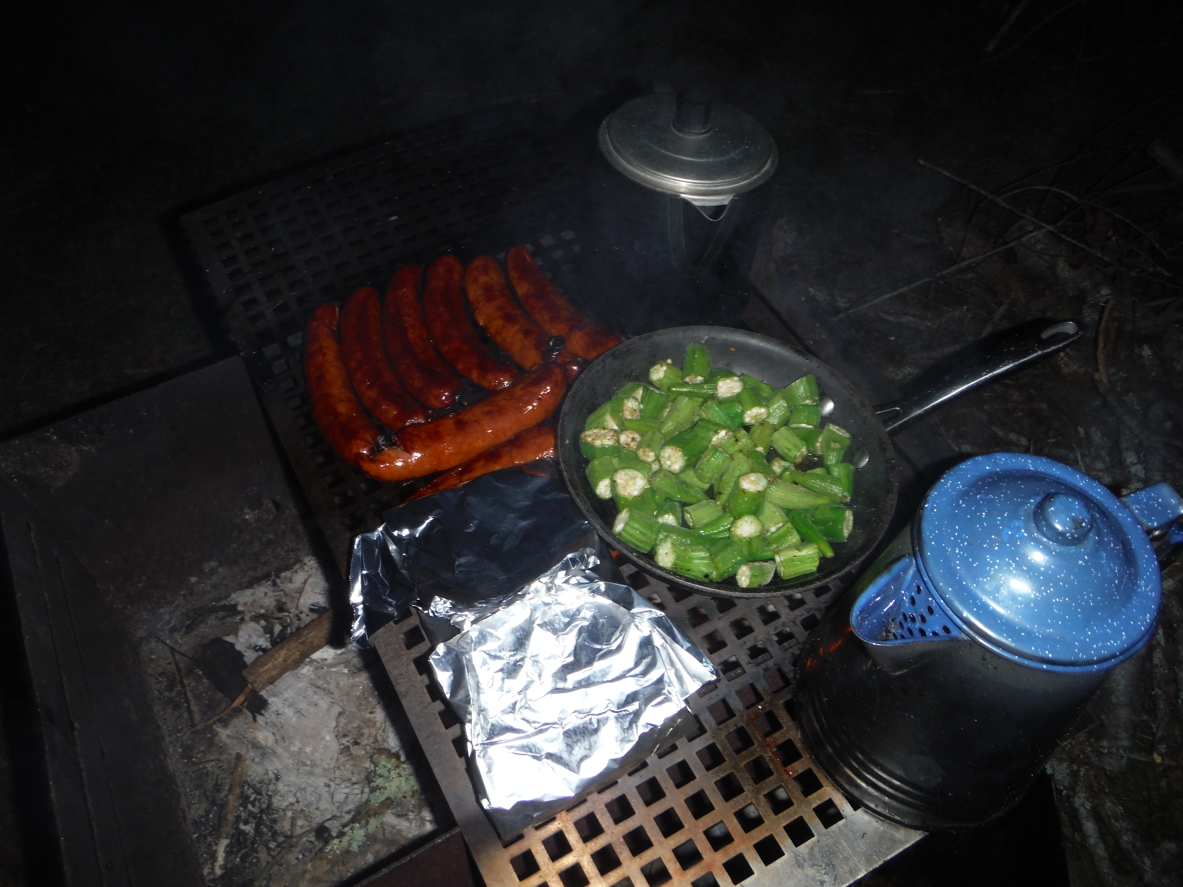There is nothing like good fried okra, but we cooked it in the nuker most days. A Tbs of olive oil, the seasoning of your choice and a few minutes of nuclear power. Cover with stretch wrap, but leave an air hole on the sides. But with no power, I had to do what I had to do.