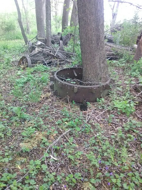 My place has a bunch of old horse drawn farm implements, that survived the WWII scrap drives. One steel tractor wheel has a pretty big maple tree growing up inside it. I'm working on clean up, but it's not a huge priority...