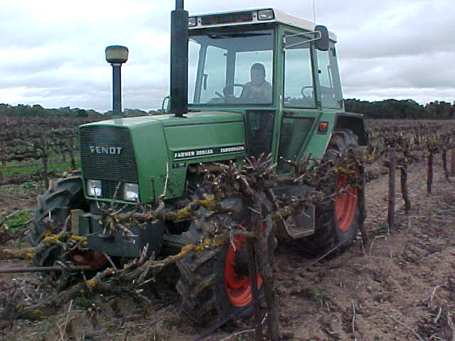 Pellenc Pre-Pruner, my brother added the rotating drums below the cutters last year in an attempt to throw the prunings out from under the row. Not entirely successful, needs more work.