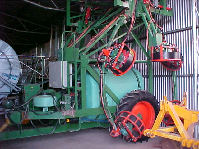 Greentech two row sprayer, made in Adelaide, South Australia uses a 60KVA three phase alternator running 10 x 2.2kW fan motors. I've made the front bearing and seal of each motor greasable or they'll get spray inside in about 40 - 50 hrs of use.