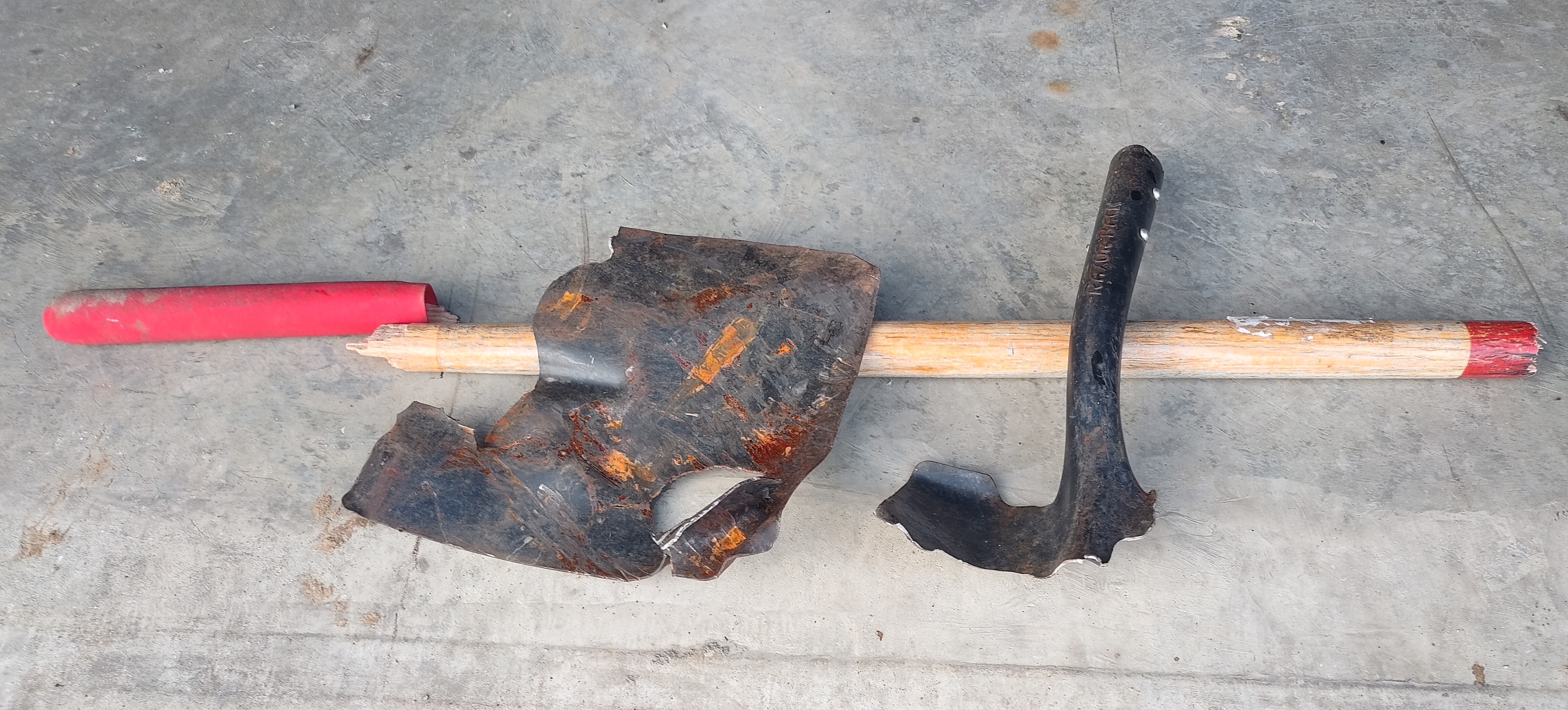 new shovel......Flail vs Shovel. One quick pass at 3.2 mph. No damage to flail or hammers.....