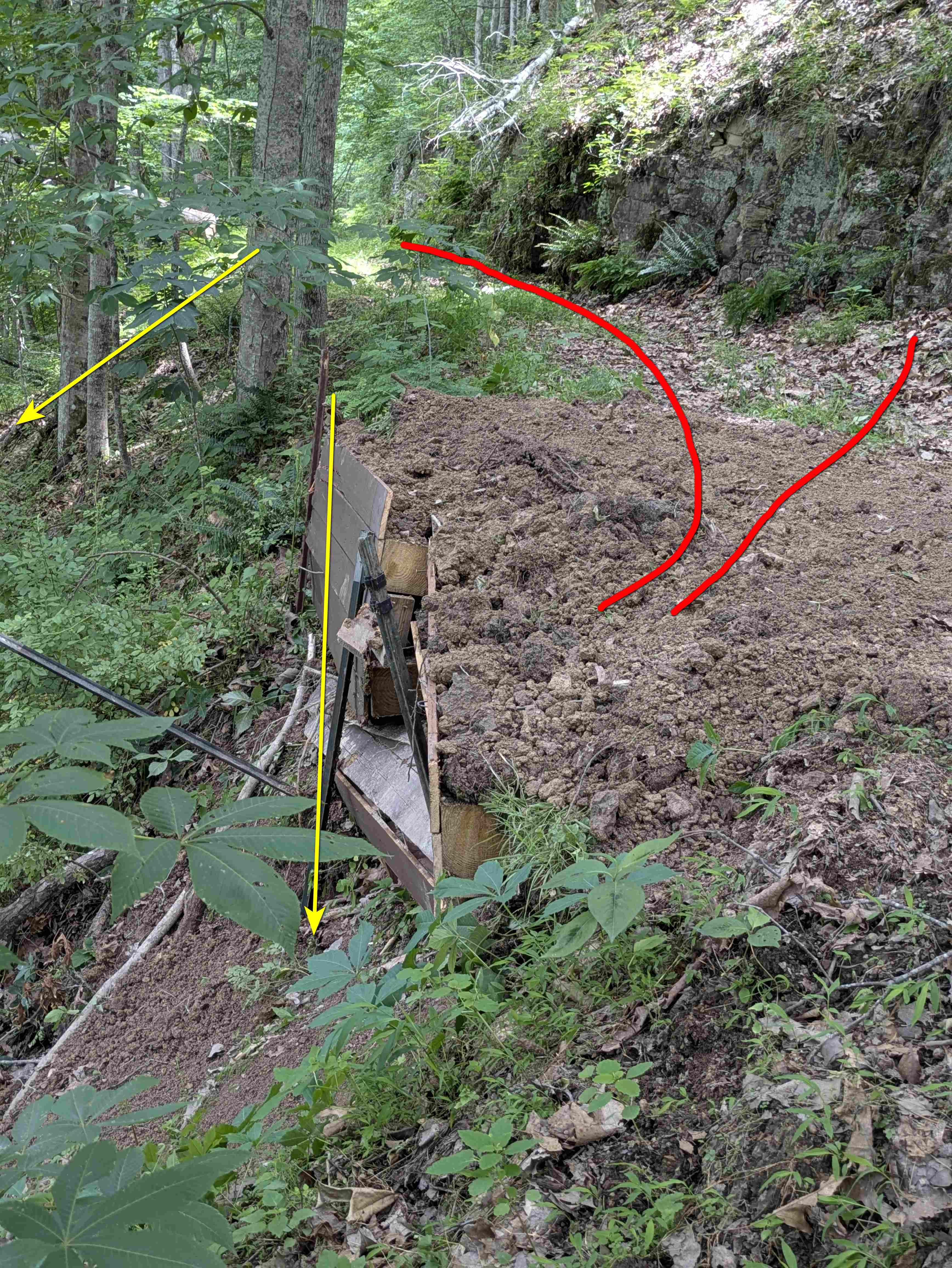 One of the challenges with trying to build up the eroded section is that fill material will want to roll off the mountain.