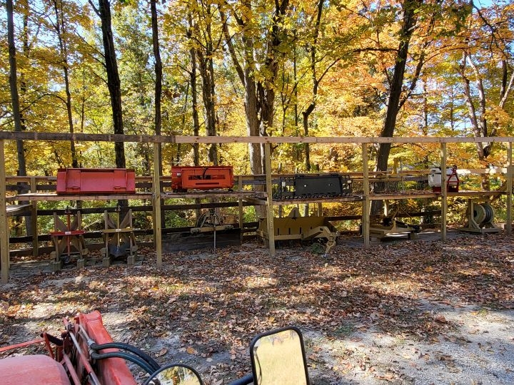 I’d look on FB marketplace for some older hardware store shelving racks. Those units are super strong. The put pallets of bagged concrete on them.I've been thinking about how I want to store my 3pt and FEL attachments/implements. What I envision is a stand-alone covered lean-to with room for 6 items. 3 up, 3 down. For my purposes, the implements would be 72"(6ft) or less (+/- a few inches). The plan is to use pallets.