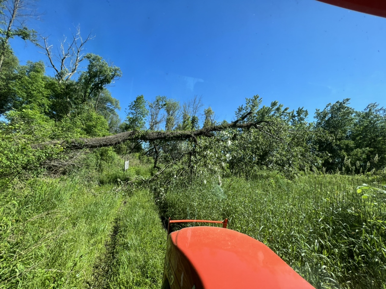 I think my plan is to clear out a spot on the back of the berm where I have lots of room to escape and work free of obstruction. Notch the underside about 8’ from the rootball. And then slowly cut from the top down towards the notch. At some point it’s gonna want to have the heavy top start to bend down to the ground and the weighted root ball snap back upright.