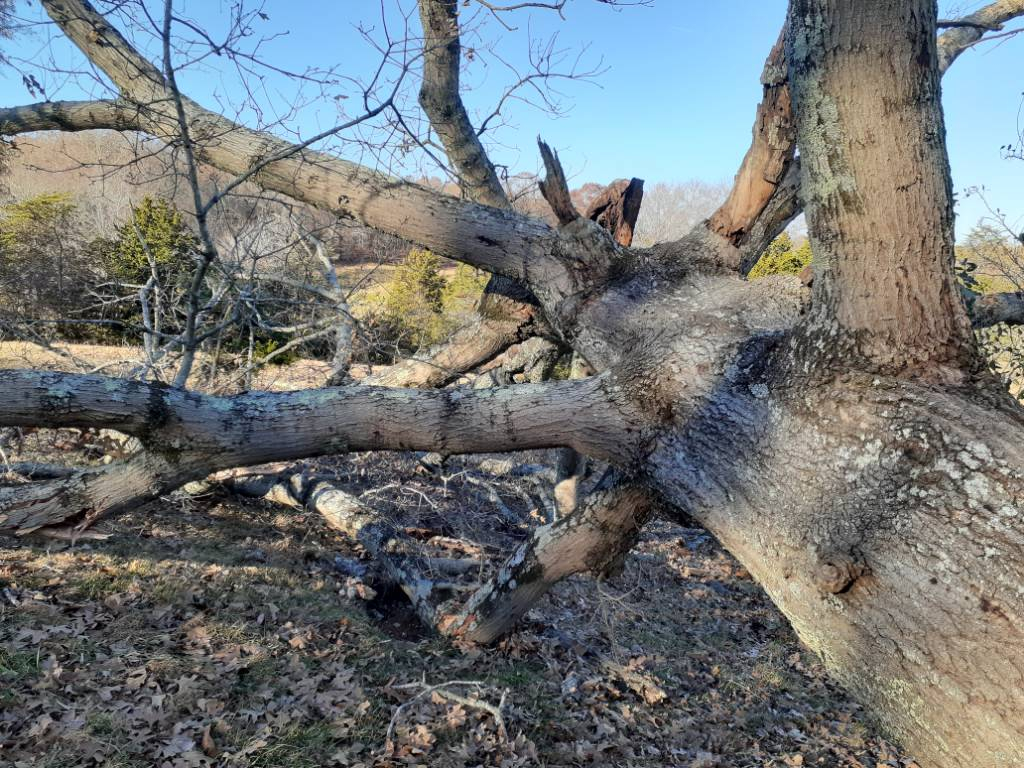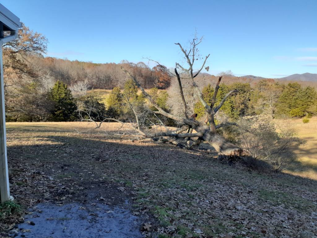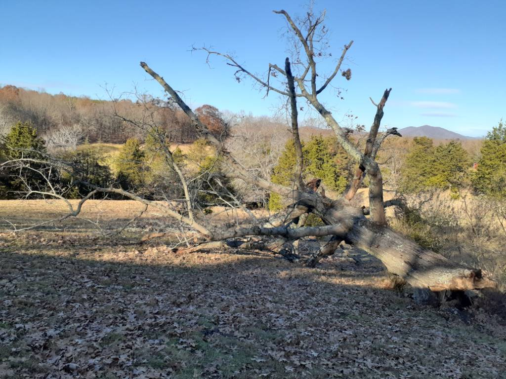 I looked out and this HUGE oak had fallen in the pasture. I bet it's 150 years old. I wanted wife raise be in tractor bucket but said "we'll both die" and went in house.