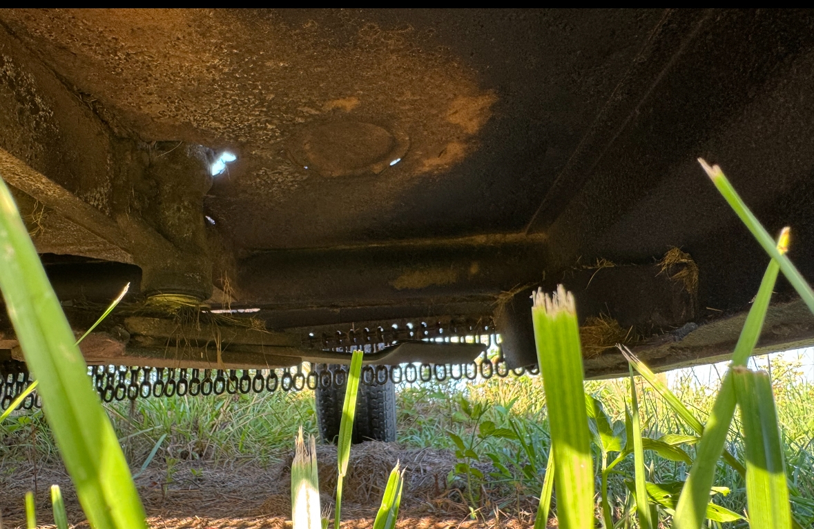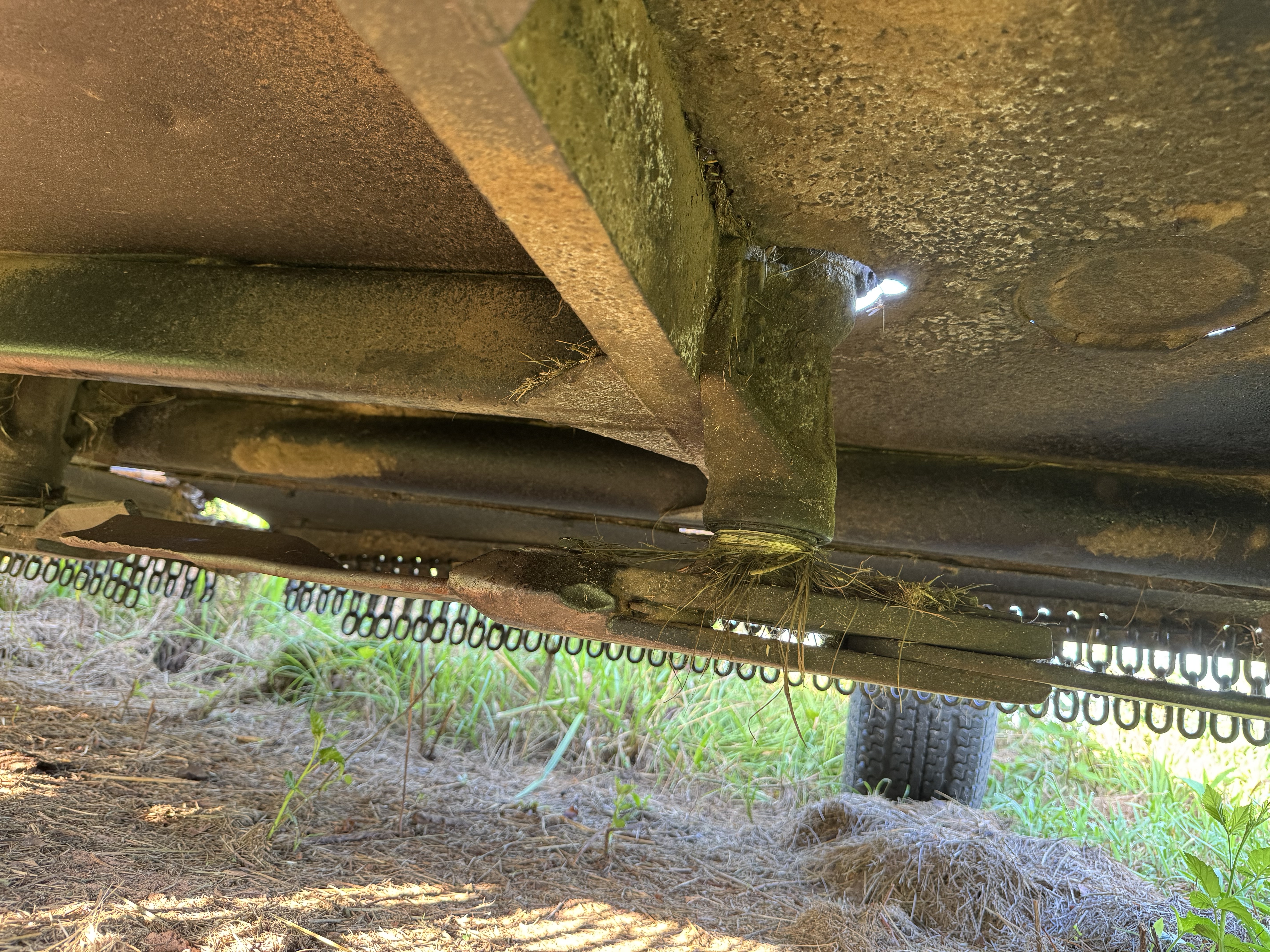"Back-sweep" is the portion of the blade going backward as the deck moves forward. This is typically the best cutting region on each blade. The deck (and tractor) is pushing the material forward as the deck moves through it. Easy for the blade to then "go against the grain" and cut cleanly. Blade pass frequency on my new cutter is 1.1"/cut @ 3mph... so each grass tuff gets appr 3 wacks. That's it.