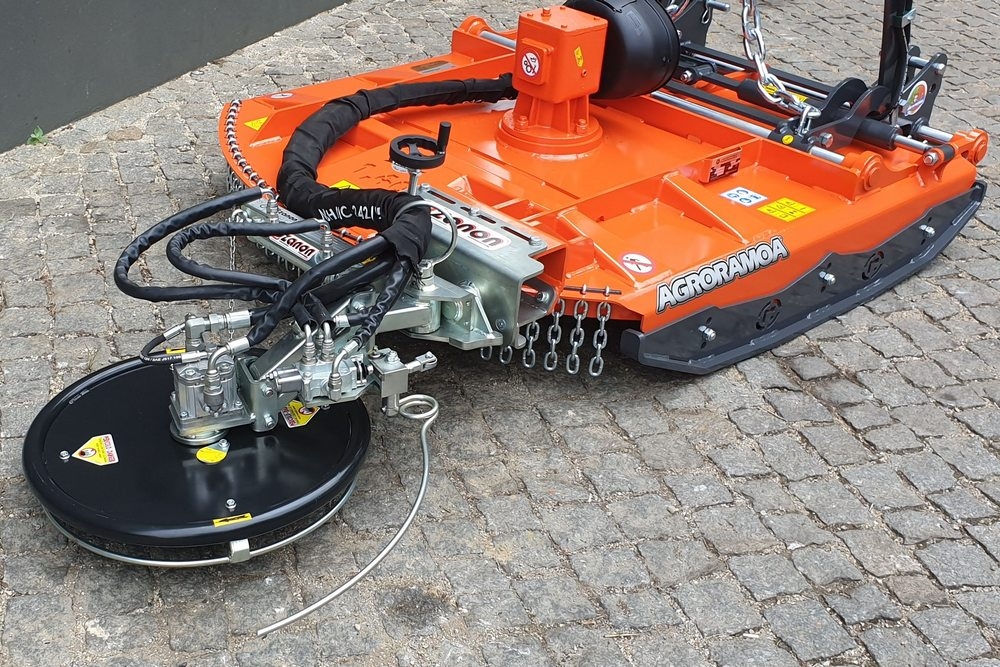 Over here is very common to mount these on the brush cutters. These strimmers are either spring loaded or hydraulically actuated with a finger that retracts the head once a tree or post pushes the finger.