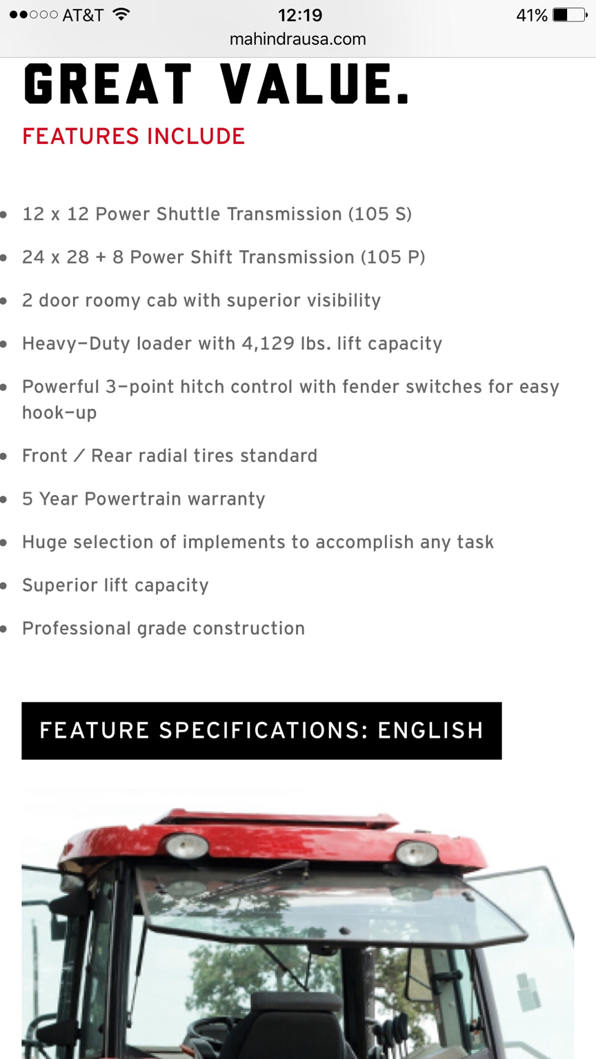 Looks like they have 2 transmissions for the MForce 105. A 12x12 and a 24x28+8. The TYM T105 has a 32x32 not sure why Mahindra would use something else. IMG_1210.JPG