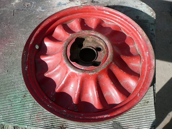 In 1976, at my first home in Oregon, I unearthed this wheel from a trash pit. I've always wondered what it was used on. Please help me find out.It measers 18" diameter. In one picture you see praying mantis hatching from the egg case stuck behind the wheel. I was working below as they were emerging. I quickly ran and got my 1995 Kodak digital to capture the event.
